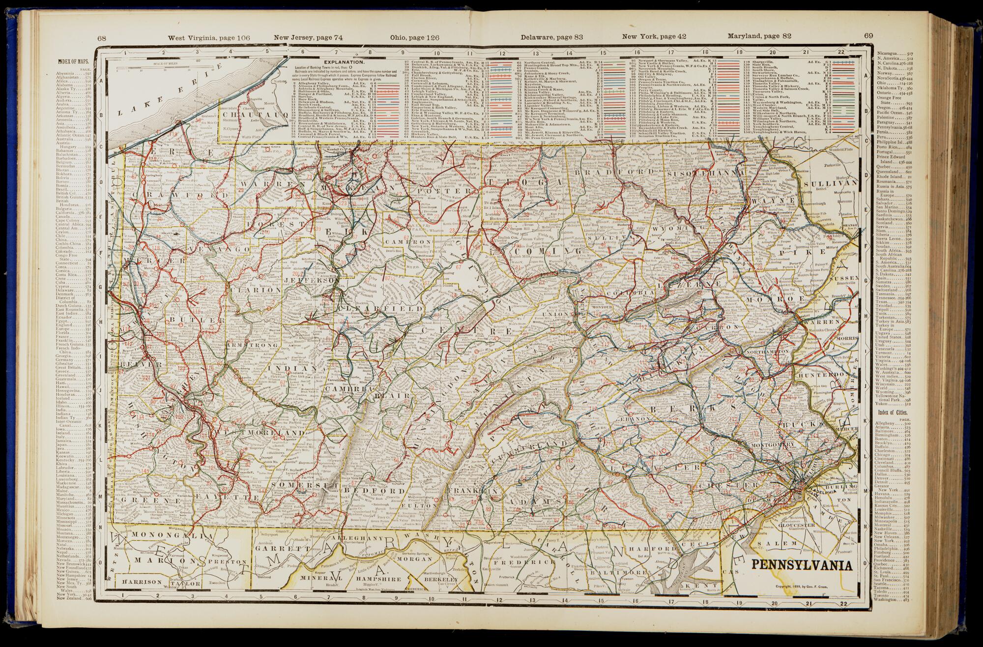 Adjacent geographical coverage in the atlas identified in top margin as "West Virginia, page 106", "New Jersey, page 74", "Ohio, page 126", "Delaware, page 83", "New York, page 42", and "Maryland, page 82".