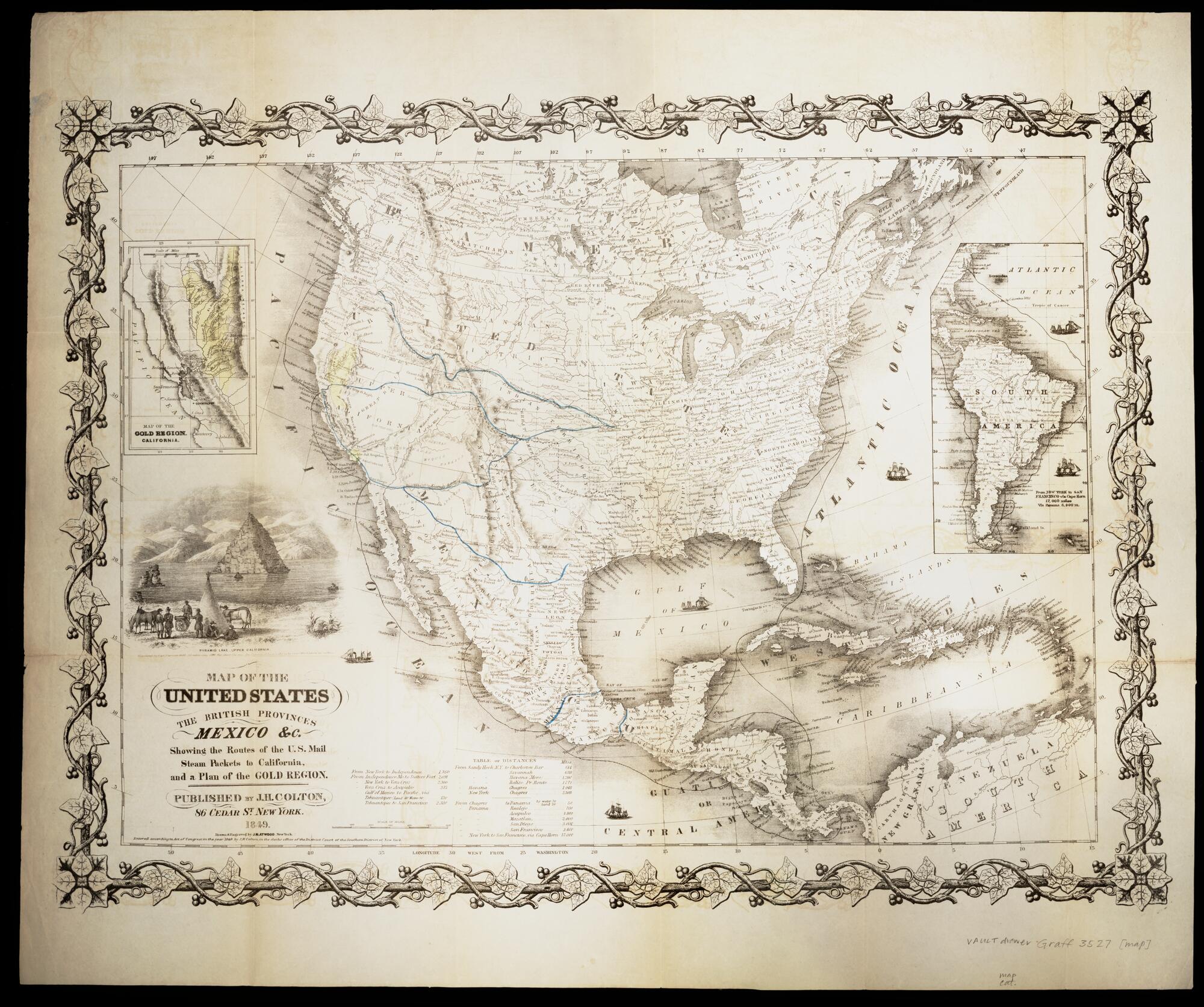 Map of the United States, the British provinces, Mexico &c. : showing the routes of the U.S. mail steam packets to California, and a plan of the Gold...
