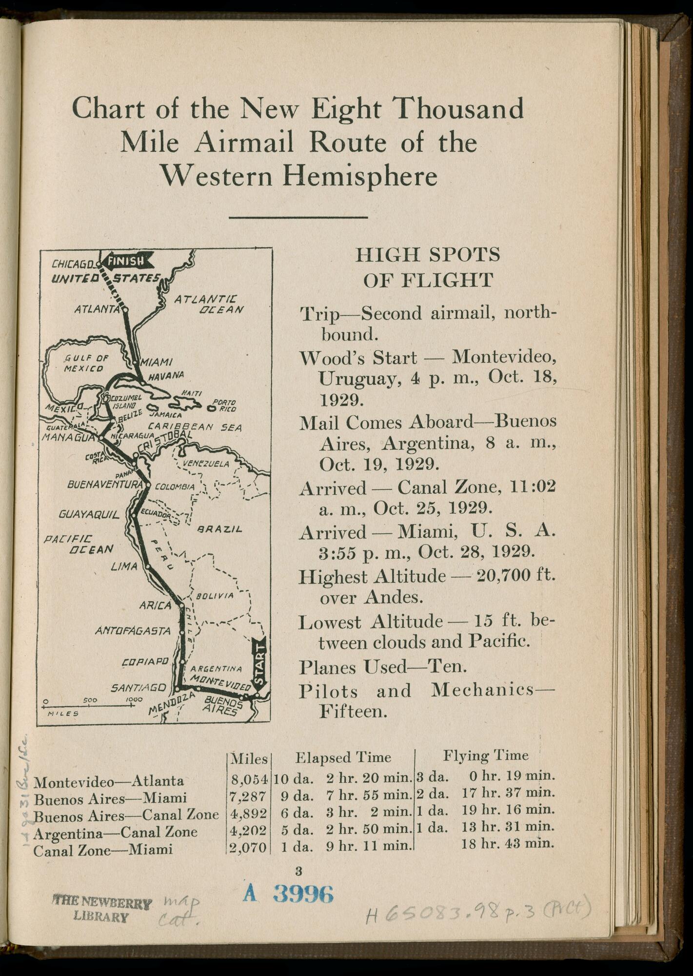 Chart of the new eight thousand mile airmail route of the Western Hemisphere