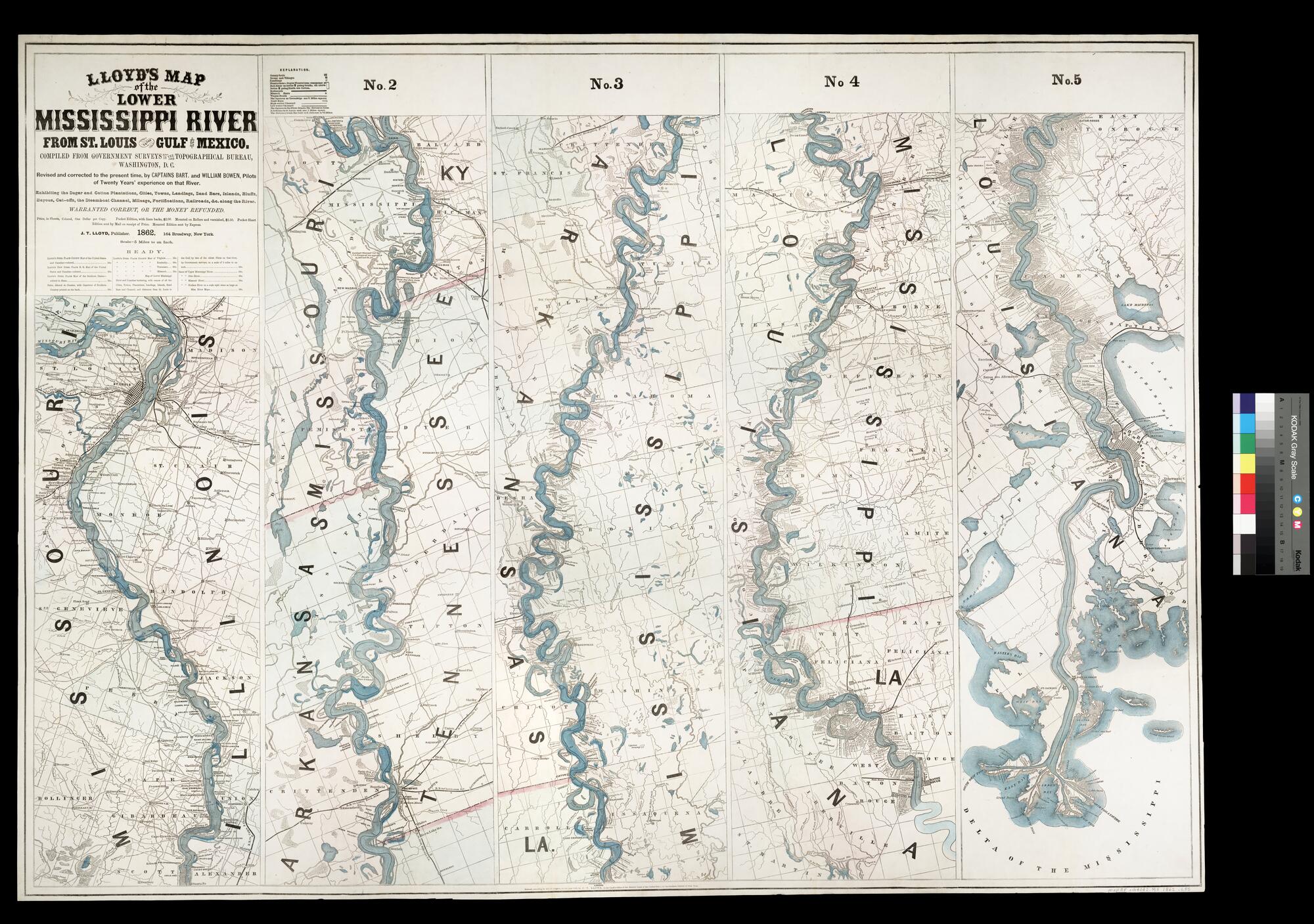 Open book Lloyd's map of the lower Mississippi River from St. Louis to the Gulf of Mexico