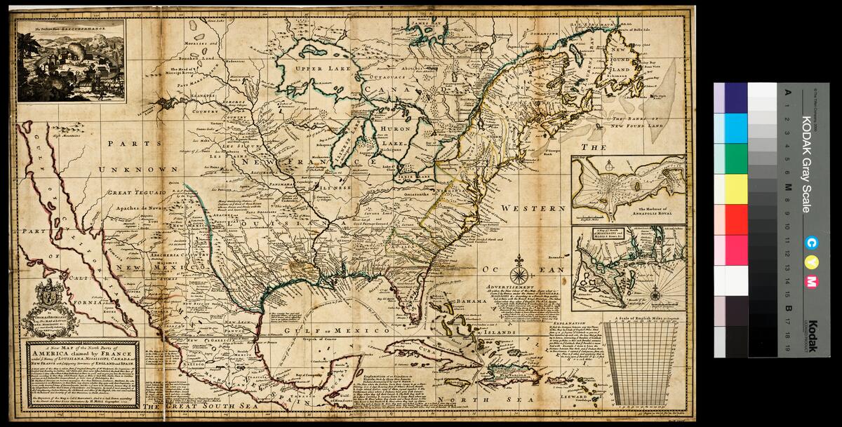 Open book New map of the north parts of America claimed by France under the names of Louisiana, Mississipi, Canada and New France, with the adjoyning...