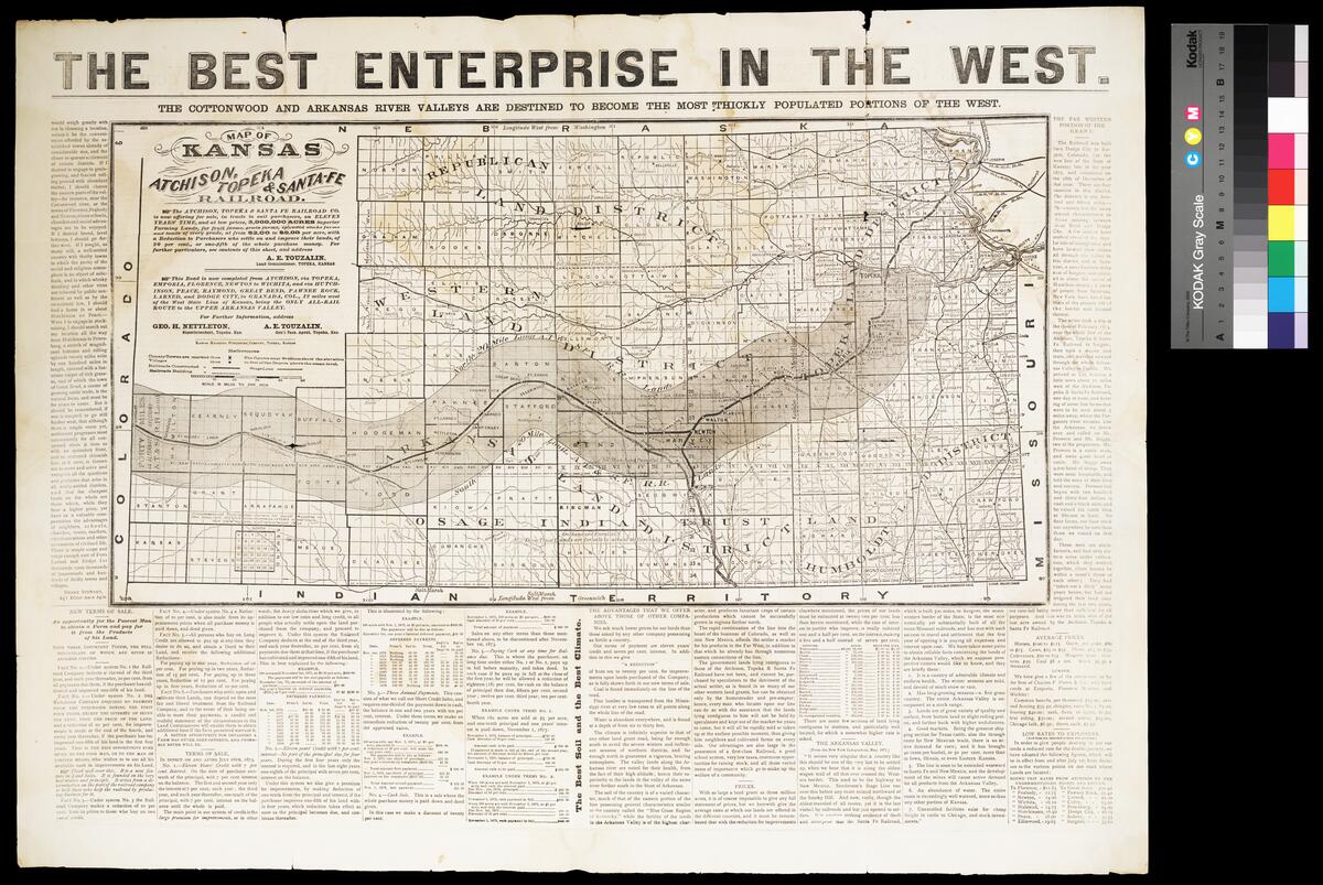 Open book Railroad lands in central and southwestern Kansas on eleven years' credit : the government grant of 3,000,000 acres to the Atchison, Topeka and Santa...