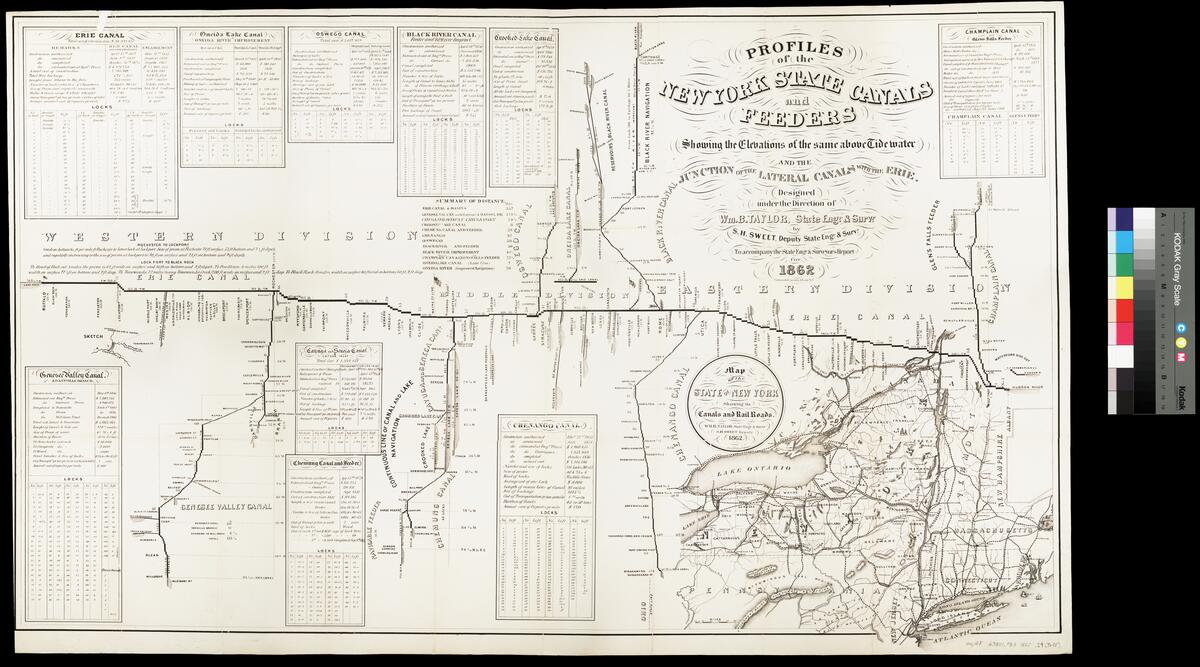 Open book Profiles of the New York State canals and feeders : showing the elevations of the same above tide water and the junction of the lateral canals with...