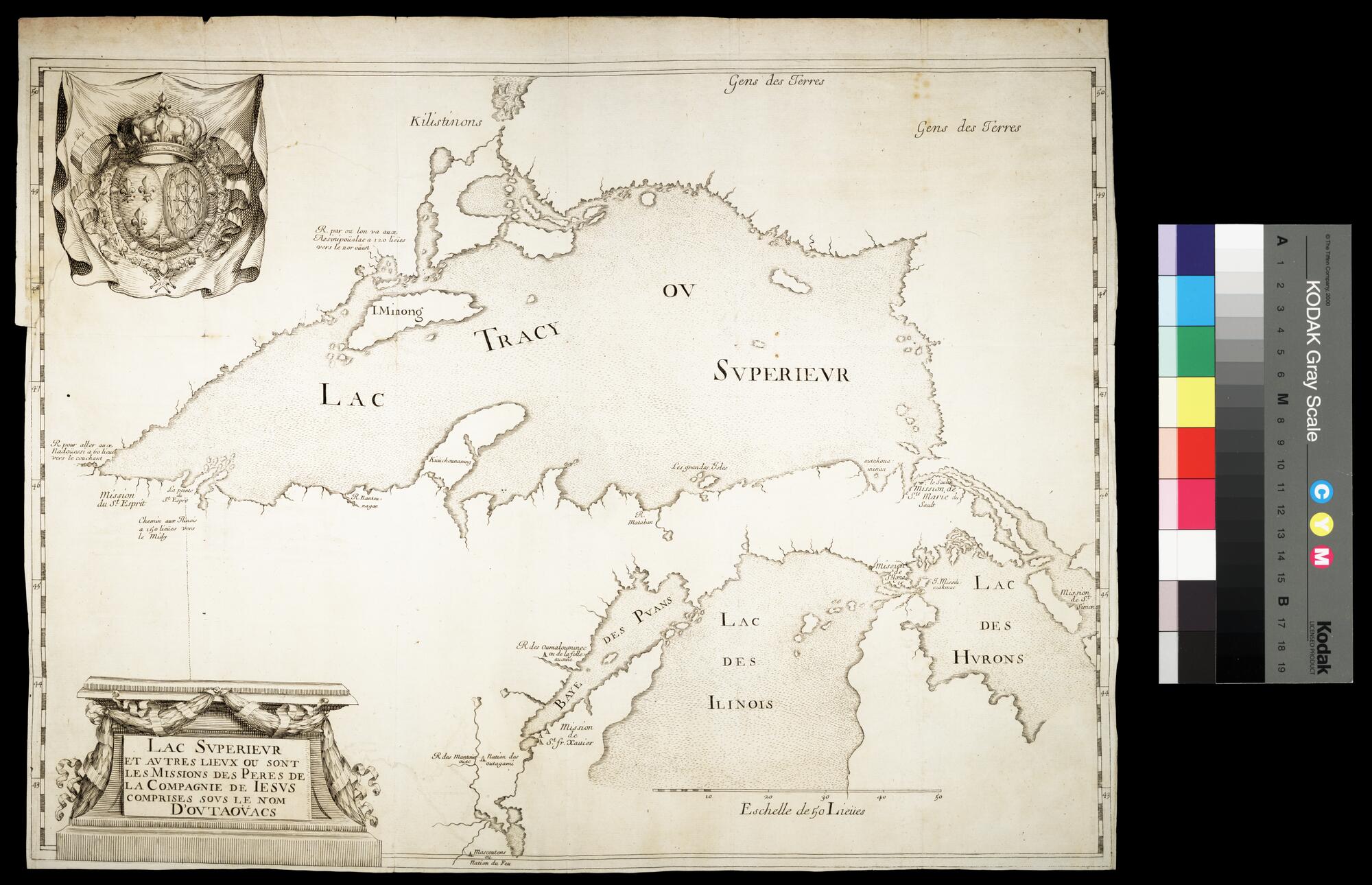 Open book Lac Superieur et autres lieux ou sont les Missions des Peres da la Compagnie de Iesus comprises sous le nom d’Outaouacs