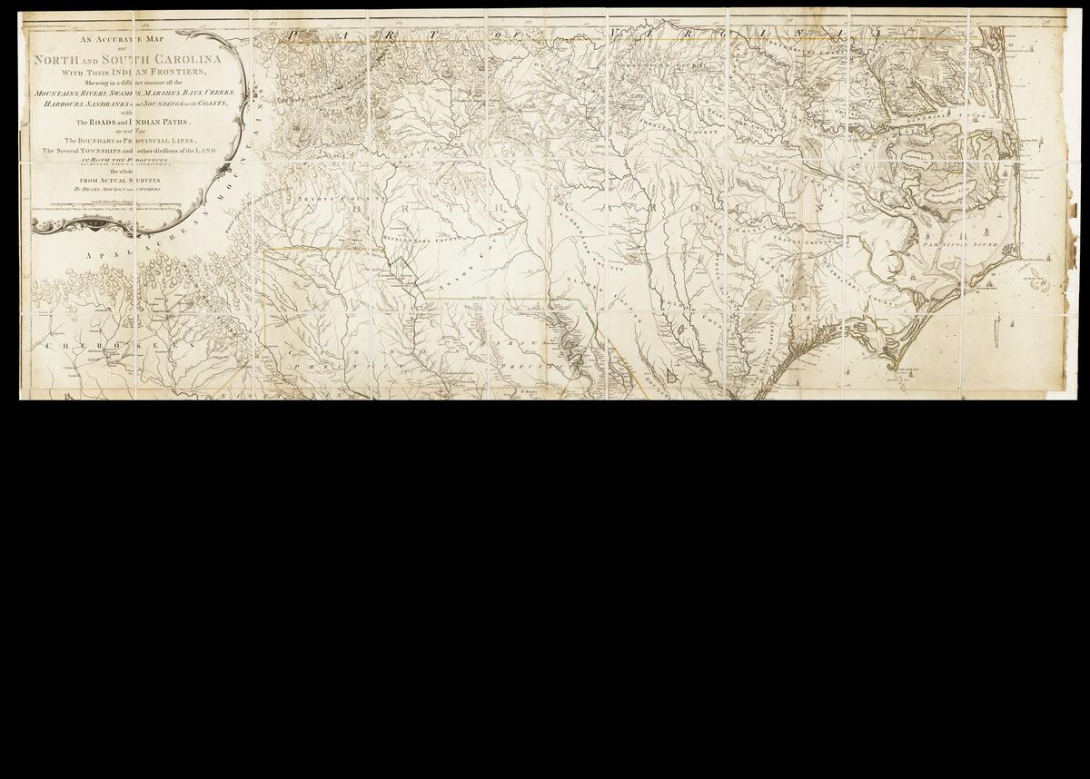 Open book An accurate map of North and South Carolina with their Indian frontiers shewing in a distinct manner all the mountains, rivers, swamps, marshes, bays,...