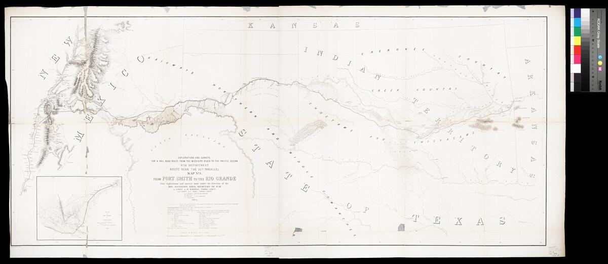 Explorations and surveys for a rail road route from the Mississippi River to the Pacific Ocean route near the 35th parallel. Map no. 1, From Fort...