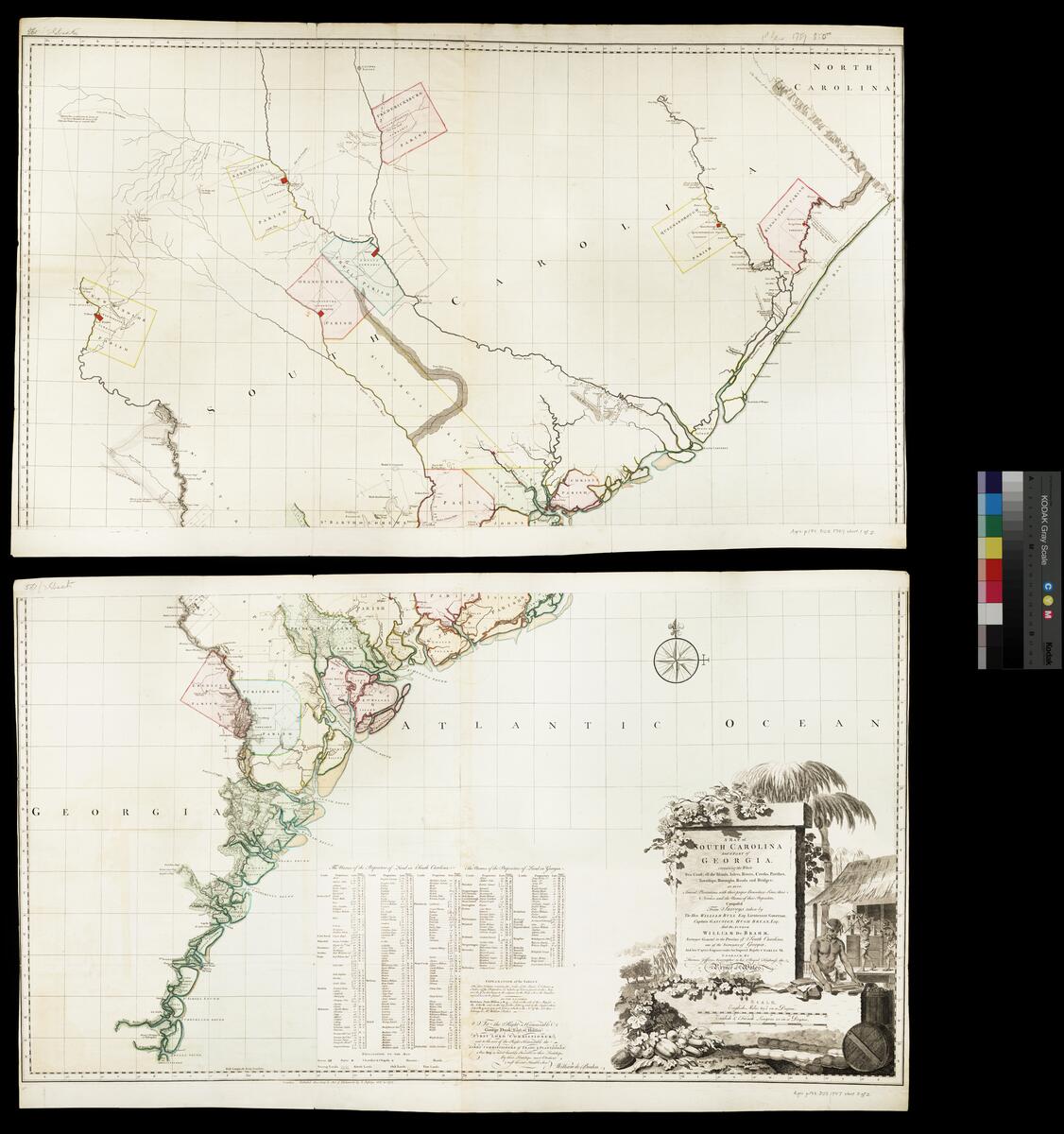 Open book Map of South Carolina and a part of Georgia containing the whole sea-coast, all the islands, inlets, rivers, creeks, parishes, townships, boroughs,...