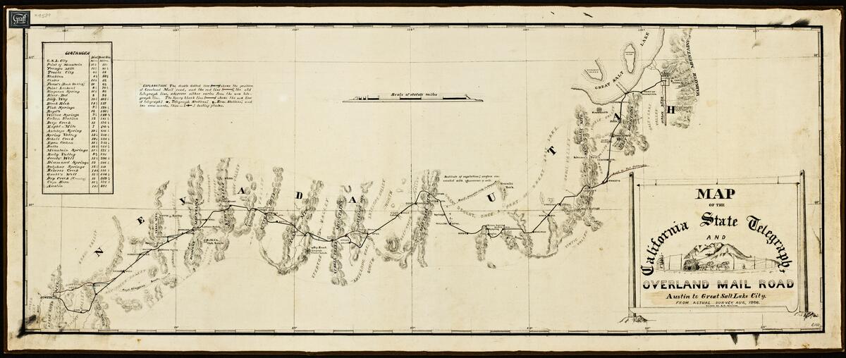 Open book Map of the California State Telegraph, and Overland Mail road : Austin to Great Salt Lake City : from actual survey, Aug., 1866